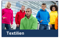 Ein weiterer Schwerpunkt umfasst unser Textil-Programm : T-Shirts, Polos, Sweat-Shirts, Hemden und Blusen, Overalls, Schürzen, Taschen, Caps, Handtücher, Arbeitsbekleidung etc.